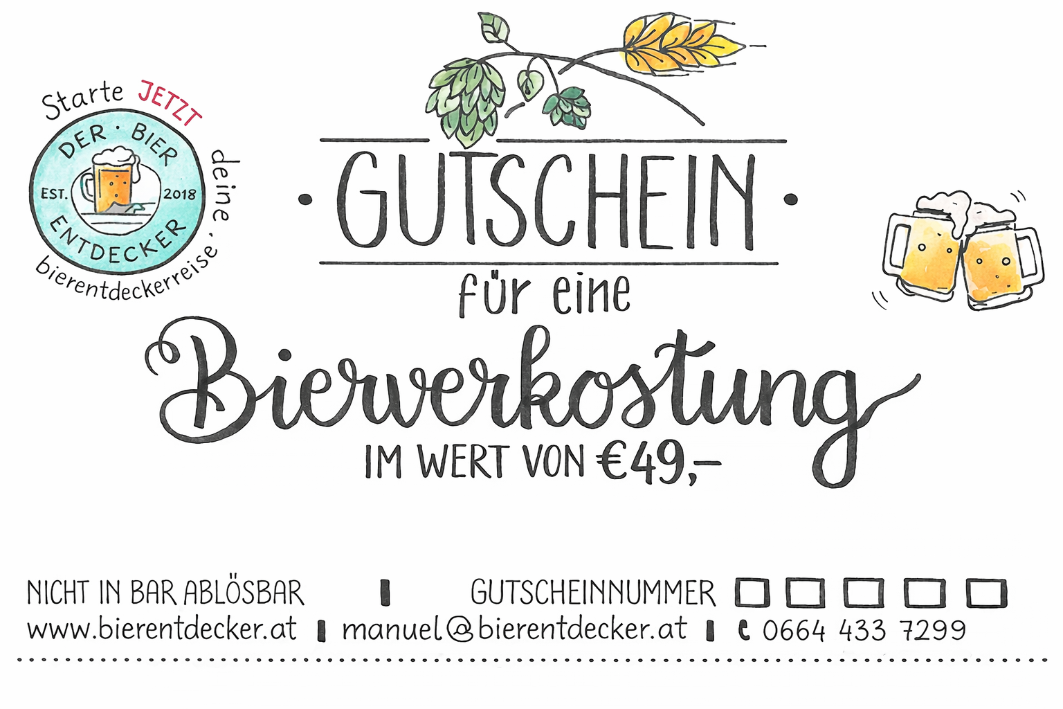 Für individuelle Gutscheine (Wertgutscheine, Gruppen etc.) einfach ein Mail an manuel@bierentdecker.at schreiben!